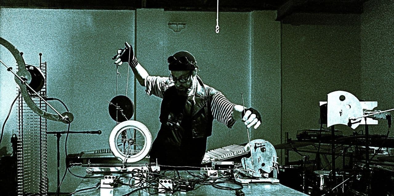 Erik Alalooga is a Tallinn-based sound and installation artist and experimental musician, known for his use of analogue technology in his works. Mechanical sound instruments, powered by either electric motors or the human body, create unique industrial sound patterns. Alalooga does not use recordings. The entire sound space is created on site using self-made sound machines, processed with electronic effects in real time. When composing his performances, he uses so-called machine logic, combining long repetitions into softer psychedelia or harsher pulsating sound masses. He defines himself as a practitioner of psychedelic noise and new industrial style. His performances are characterised by a strong visual element created by moving machines, light and shadows, and projections. He has performed with his mechanical music machines in the Baltic and Nordic countries, Germany, the Netherlands, the UK, the Czech Republic, and Italy.